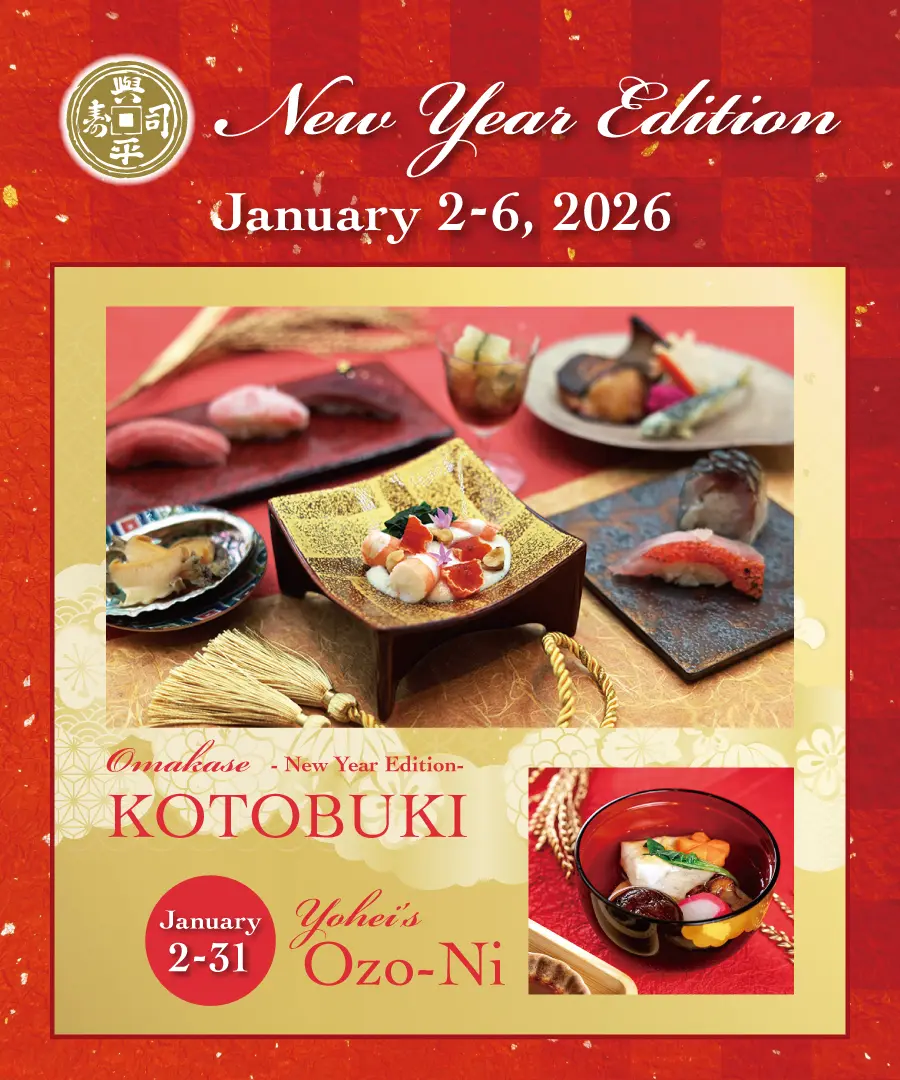 We are pleased to announce a special New Year Lunch & Dinner Course event, taking place from Friday, January 2nd to Tuesday, January 6th at our sushi counter and private rooms.